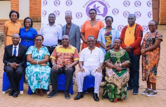 Back: Gloria Kibera Guma (new), Isabella Nakimuli (new) Matovu William, Dr. Hennry Ddungu (new), Aseku Edith, Immaculate Owomugisha (Retired) Fr. Mubangizi, John Bosco, Juliet Namusoke. Front: Gerever Niwagaba, Fatia Kiyange, Dr. Aloysius Byaruhanga (Patron of KHC), Dr. Victor Musiime (retired) Sarah Komugisha (retired)